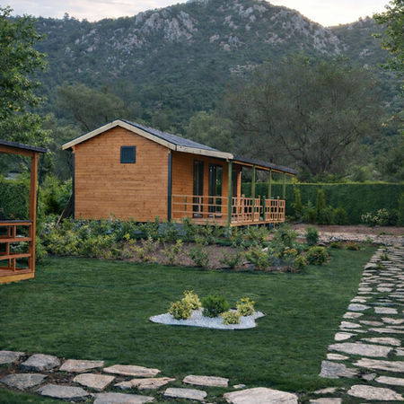 1+0, 1+1 veya 2+1 plan seçenekleriyle sunulur. Yatak odası, banyo ve açık mutfaklı salon içeren bu model, yerleşim ve oda sayısında isteğe göre düzenlenebilir. En: 3–3,5 m | Boy: 7–10 m İsteğe bağlı veranda seçeneği mevcuttur.